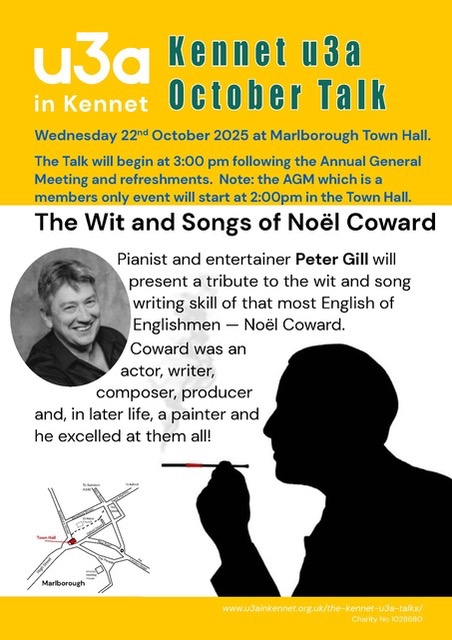 The October 2025 Kennet u3a talk will take place at 3pm in Marlborough Town Hall, following the AGM. Our AGM will commence at 2pm and will be followed by tea and cake before the talk at 3pm.